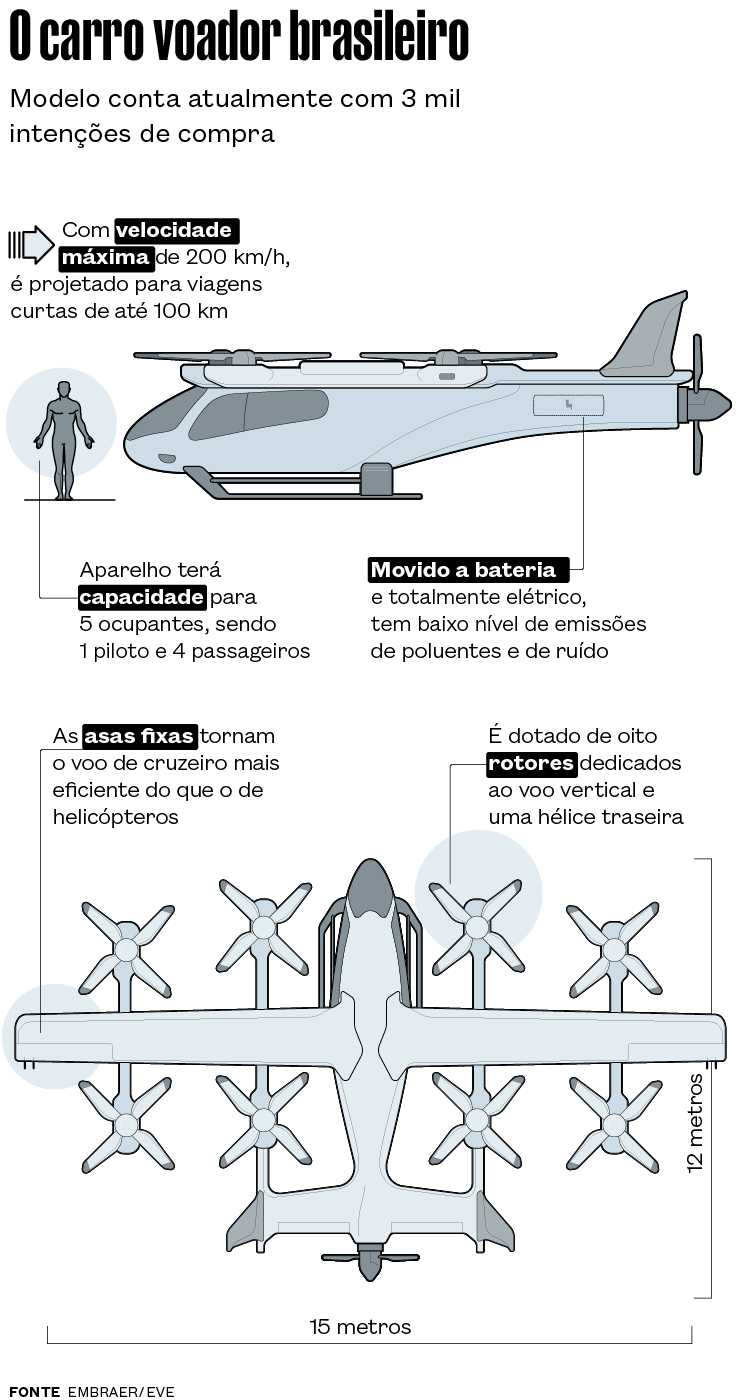 Com o objetivo de obter a certificação do aparelho na Agência Nacional de Aviação (Anac), a empresa planeja realizar centenas de voos com o protótipo ao longo deste ano. A certificação comprova que o eVTOL é seguro para voar e operar comercialmente em larga escala, atendendo critérios de desempenho, gerenciamento de energia, emissões, entre outros. Se tudo correr como o planejado, o carro voador brasileiro deverá entrar em operação comercial em 2027.