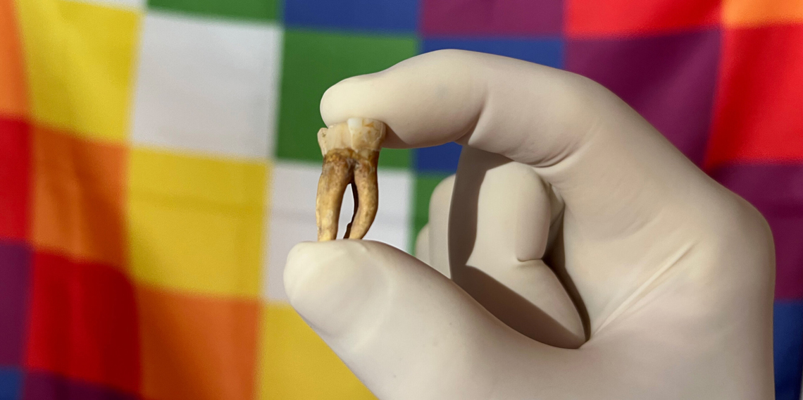 Nicolás Rascovan / PasteurA tooth unearthed from an archaeological site in Argentina, used to extract ancient DNANicolás Rascovan / Pasteur