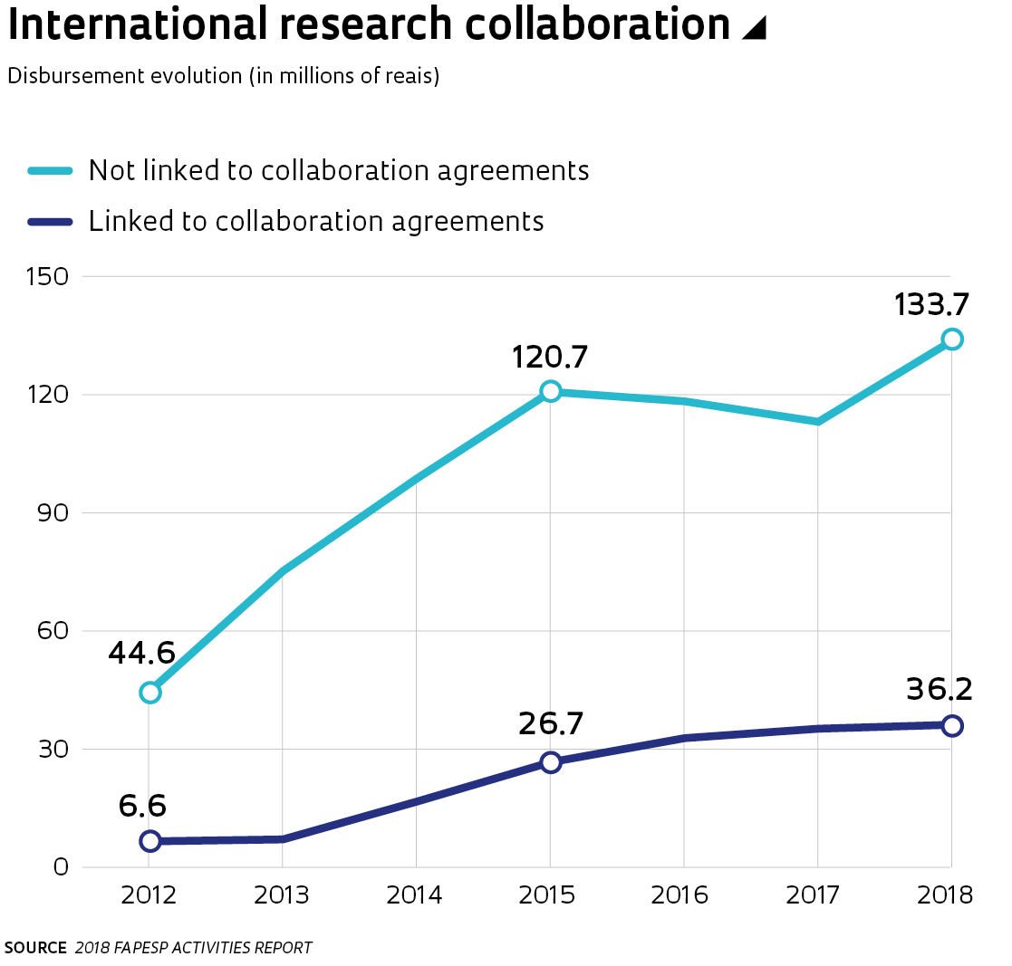 FAPESP has allocated R$216.6 million to collaborative research. In order to stimulate international cooperation, the Foundation invested R$133.7 million, emphasizing the categories of Research Internships Abroad (BEPE), which ranges from scientific initiation to postdoctoral grants, and Research Fellowships Abroad (BPE), which is accessible to researchers who have already finished their education, including senior researchers.