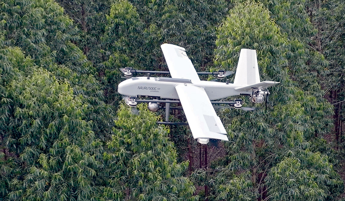 The drone is a winged VTOL system measuring 1.86 meters long with a 3.64-meter wingspan, developed as part of the company’s Nauru drone family. With a four-hour endurance and a 60-kilometer operational radius, it can reach altitudes of up to 3,000 meters. “It’s the only drone in Brazil authorized by ANAC—our national civil aviation authority—to operate above 400 feet (about 192 m) and to fly at night,” says commercial director Thatiana Miloso.