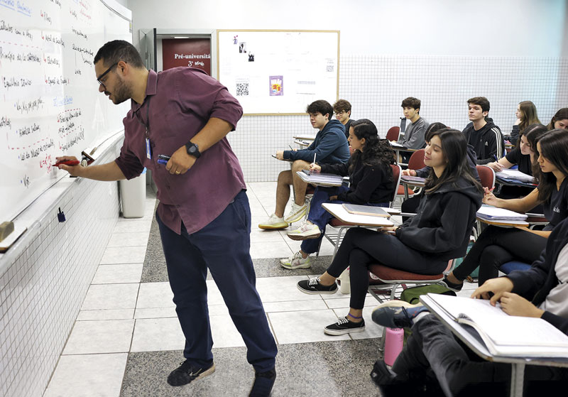 José Cruz / Agência BrasilSamuel Ribeiro Costa prepares students for the 2024 ENEM exams at a school in BrasíliaJosé Cruz / Agência Brasil