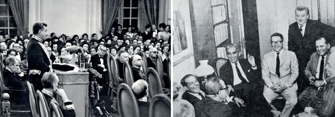 Natinal Archives / Correio da Manhã / Wikimedia Commons | Revista Brasileira – Brazilian Academy of Letters / Wikimedia CommonsTwo photos of Amado (standing) from the 1960s—first, at a gathering attended by President João Goulart (to the left of the lamp); second, at the Brazilian Academy of LettersNatinal Archives / Correio da Manhã / Wikimedia Commons | Revista Brasileira – Brazilian Academy of Letters / Wikimedia Commons
