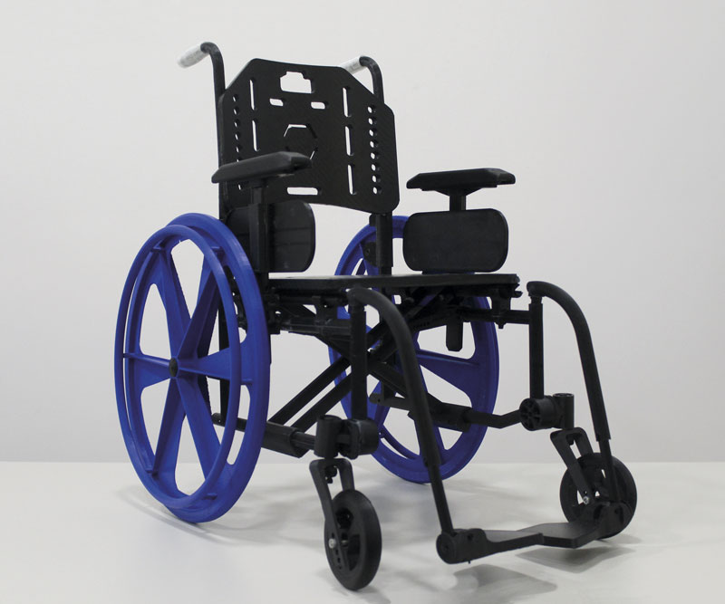 The first, currently underway, is designing a conventional wheelchair that uses more ergonomic materials—yet remains affordable and priced in line with SUS procurement standards. This will include replacing standard polymer components like the seat, backrest, and armrest with anatomically contoured parts made from thermoformable foams—composite polymer materials reinforced with natural or synthetic fibers. “These materials conform to body shape and significantly improve comfort,” says Alessandro Guimarães, an industrial engineer and LEL’s technical lead.