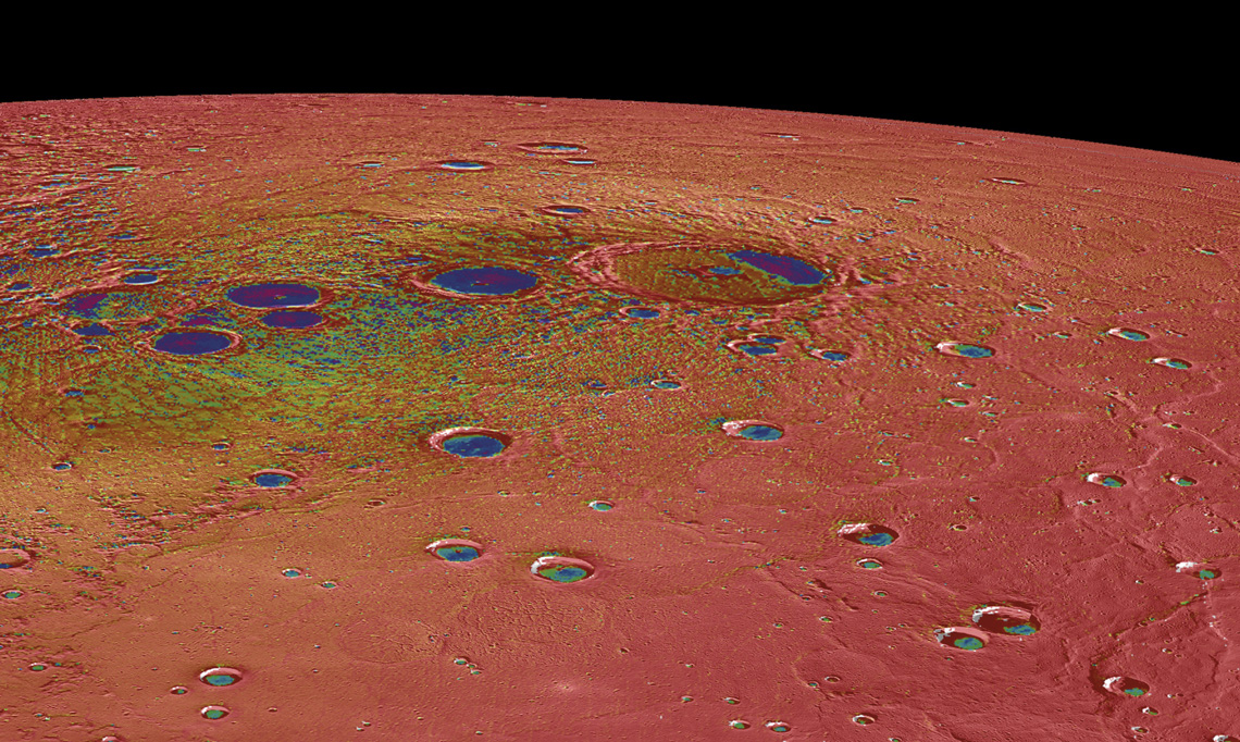 NASA / Johns Hopkins University Applied Physics Laboratory / Carnegie Institution of WashingtonA colorized image of Mercury’s north pole during a moment of great temperature variation, with red areas surpassing 200 ºC and blue regions reaching only 10 ºCNASA / Johns Hopkins University Applied Physics Laboratory / Carnegie Institution of Washington