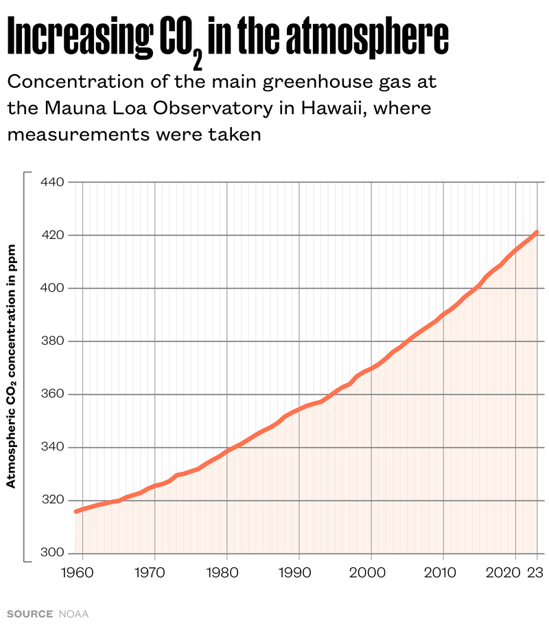 The data point to unprecedented atmospheric levels of carbon dioxide (CO2), methane (CH4), and nitrous oxide (N2O), the main greenhouse gases. The current average concentration of CO2, the most common of them, exceeded 420 parts per million (ppm), 50% more than in the preindustrial period (see graph, below). Methane production has also accelerated in recent years. A major driver of methane emissions is the enteric fermentation of ruminants (cows, goats, and sheep). Every 24 hours, the total number of ruminants worldwide grows by 170,000 animals, almost the same rate of growth as the planet’s human population, which increases by around 200,000 people per day.