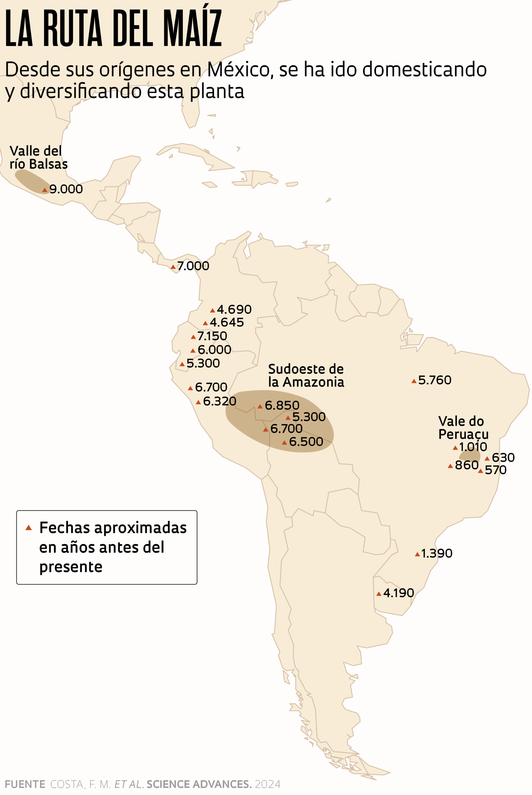COSTA, M. F. et al. Archaeological findings show the extent of primitive characteristics of maize in South America. Science Advances. v. 10. 4 sep. 2024.