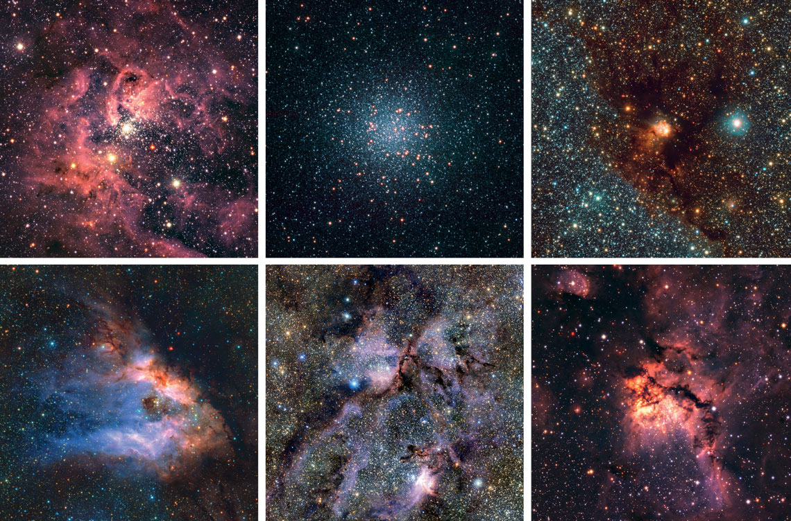 ESO / VVVX surveyImágenes de las nubes de gas donde se forman las estrellas, excepto una (arriba, en el centro) que muestra un denso conjunto de estrellas antiguasESO / VVVX survey