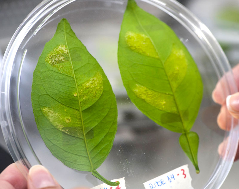 En las próximas semanas, cuando las lluvias se intensifiquen, dos biólogos paulistas tienen previsto llevar a los naranjales los compuestos con los que han venido trabajando en los últimos años. Pretenden comprobar si, a cielo abierto, tienen un efecto protector contra la bacteria Xanthomonas citri subsp. citri, causante de la cancrosis de los cítricos, una antigua enfermedad de la citricultura brasileña, que aún pervive en alrededor del 20 % de las plantaciones de cítricos.