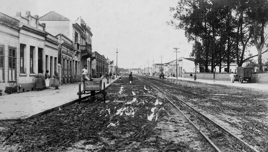 Acervo Centro de Memória Faculdade de Saúde Pública da USPDejetos de uma latrina (à dir.) caem sobre córrego Saracura Grande, no atual bairro do Bixiga, perto de uma área usada por lavadeiras (à esq.)Acervo Centro de Memória Faculdade de Saúde Pública da USP