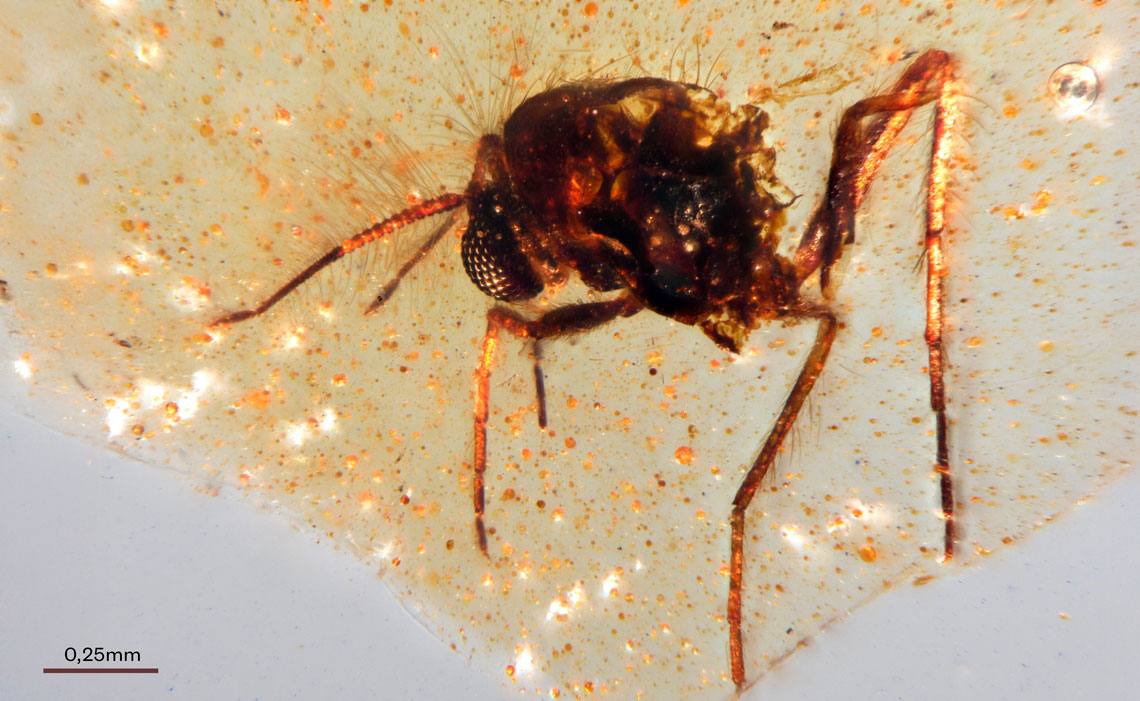 Ao todo, os pesquisadores identificaram 21 insetos. São mosquitos que se alimentam de sangue (Ceratopogonidae), insetos que vivem perto da água (Chironomidae e Trichoptera), vespas parasitoides (Scelionidae e Stigmaphronidae), percevejos da família Hemiptera, moscas-brancas (Aleyrodidae), moscas comuns (Ceratopogonidae, Chironomidae e Dolichopodidae) e um besouro da família Tetratomidae. Em um fragmento de âmbar bem claro, a equipe encontrou fragmentos de uma teia de aranha. “É uma quantidade muito grande de material”, comenta Pereira, que faz uma comparação: “Quando somo todo o âmbar dos depósitos que estudei, não chega a 100 gramas desse material. O que vemos no Equador é um verdadeiro depósito”.