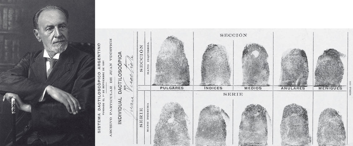 Domínio público | NLM/NIHJuan Vucetich, antropólogo e policial croata-argentino que dialogava com Galdino Ramos, e um cartão de 1912 com suas próprias digitaisDomínio público | NLM/NIH