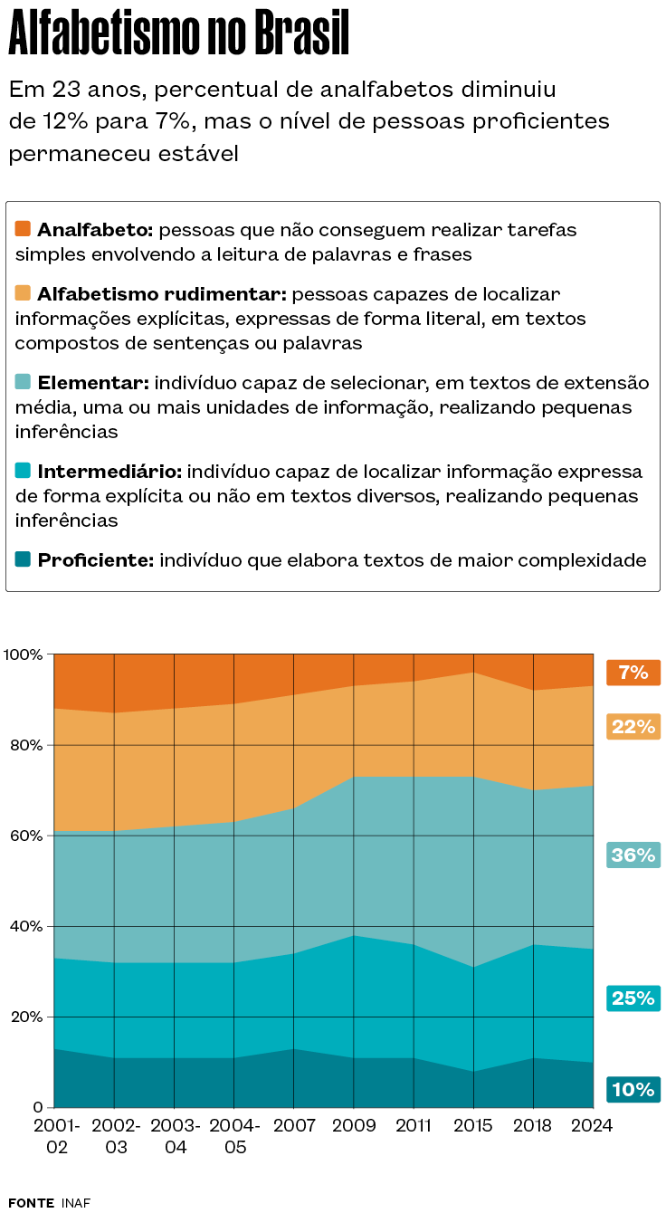 Iniciado em 2025, o projeto formou 274 alunos, com foco em três frentes articuladas: a melhoria do domínio técnico da leitura e da escrita, a ampliação do uso de tecnologias digitais e o exercício da cidadania. “Os conteúdos abarcam situações concretas do cotidiano, entre elas o acesso a serviços do governo por meio de plataformas digitais e a identificação de desinformação”, conta Vazquez. No ano passado, o projeto conquistou o primeiro lugar no Prêmio da Associação Nacional de Pós-graduação e Pesquisa em Ciências Sociais (Anpocs) de extensão universitária.