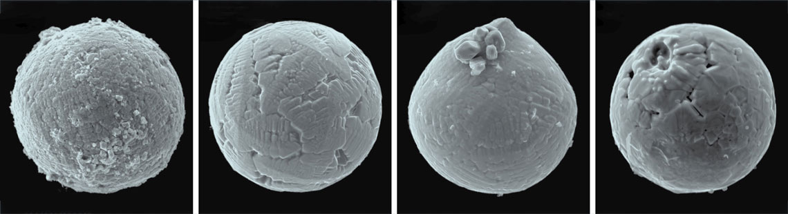 Micrometeoritos, com idades estimadas entre 300 milhões