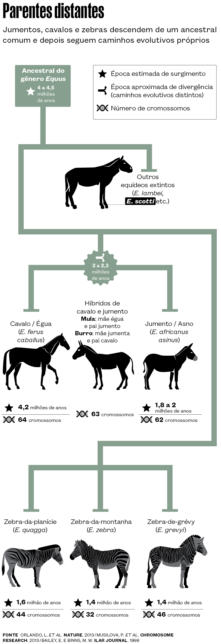 Em um sítio em Indaiatuba, um dos 75 criadores paulistas reconhecidos pela Associação Brasileira dos Criadores de Jumento Pêga (ABCJPêga), que a reportagem de Pesquisa FAPESP visitou no início de outubro, o fazendeiro César Barnabé, da Agropecuária Barnabé, cria cerca de 70 jumentos para a produção de mulas. Esses animais são resultantes do cruzamento de jumentos com éguas, fêmeas de uma espécie-irmã, o cavalo (Equus caballus). Mulas ou burros normalmente são estéreis por causa da incompatibilidade genética (o cavalo tem 64 cromossomos e o jumento 62).
