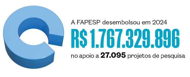 A FAPESP investiu no ano passado R$ 1.767.329.896 no financiamento a um número recorde de projetos: 27.095 bolsas e auxílios à pesquisa, 17,6% mais do que o total de 2023. No intervalo de um ano, 12.952 novos projetos foram contratados. O desempenho sinaliza uma superação quase integral do prejuízo causado pela pandemia nas universidades e instituições científicas de São Paulo. O montante em dinheiro aportado pela Fundação em 2024 foi 29,3% superior ao desembolsado em 2023 e, em valores correntes, é o maior da série histórica – já em valores atualizados pela inflação, o investimento ainda fica um pouco atrás do executado em 2019, antes da emergência de Covid-19.